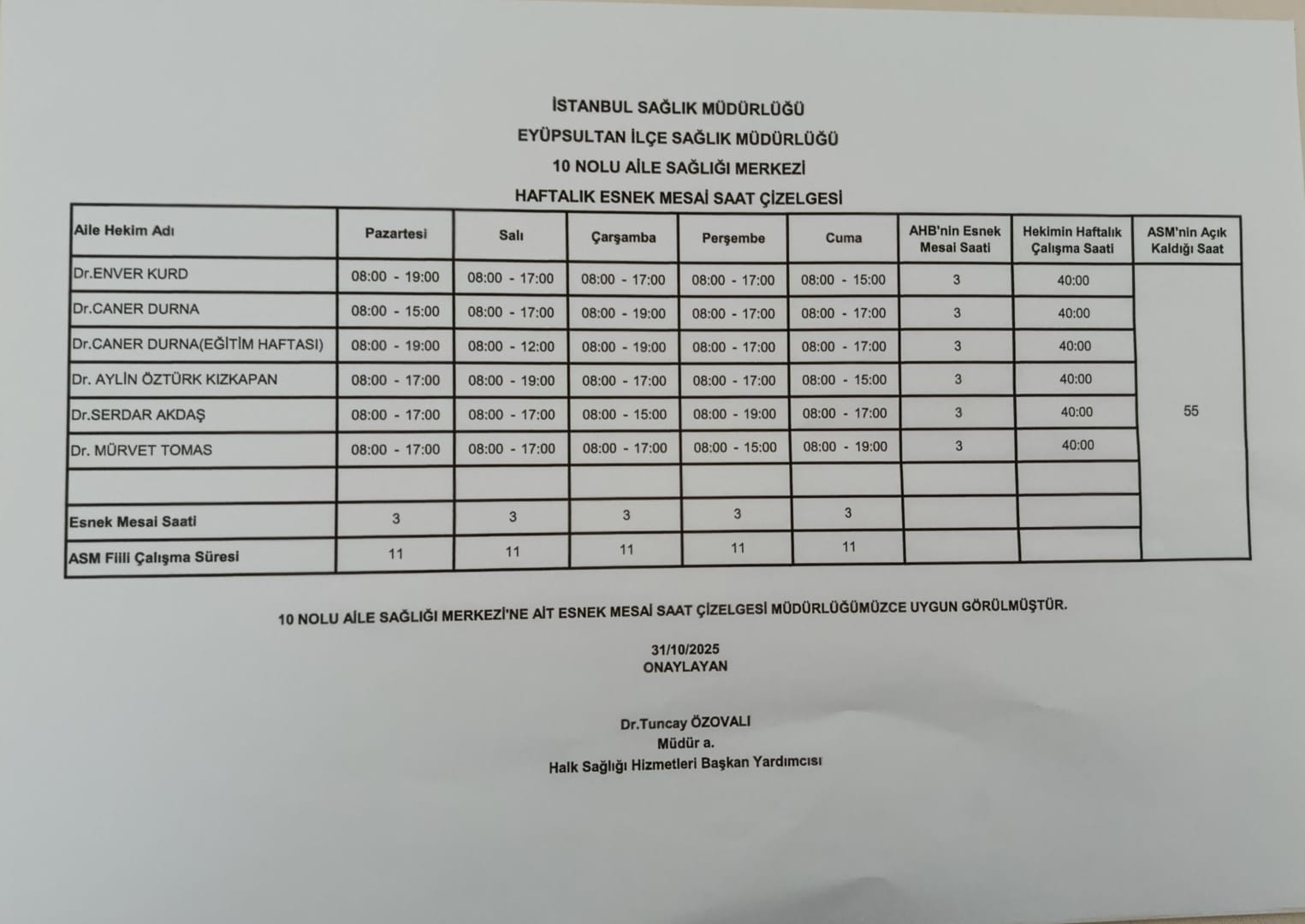 Hekiminizin kurum dışı ve esnek mesai günlerine dikkat ediniz!